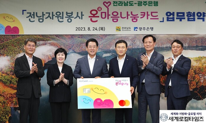 전남도는 24일 ‘전남자원봉사 온(溫)마음나눔카드 지원사업’을 효율적으로 추진하기 위해 광주은행과 업무협약을 했다.
