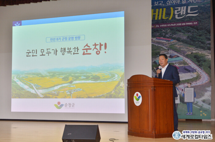 최영일 군수는 민선8기 군정비전 ‘군민 모두가 행복한 순창’과 5대 목표, 이를 위한 ▲군민 모두에게 열린 소통행정 ▲전국 제일의 보편적 복지시스템 구축 ▲효율적 군정 운영을 위한 조직 슬림화 ▲지방자치 시대의 성공을 이끌 자주재원 확대 ▲비효율적 공공건축물 건전화 추진 등 5대 정책방향에 대한 평소 생각과 소신을 직원들에게 피력했다.