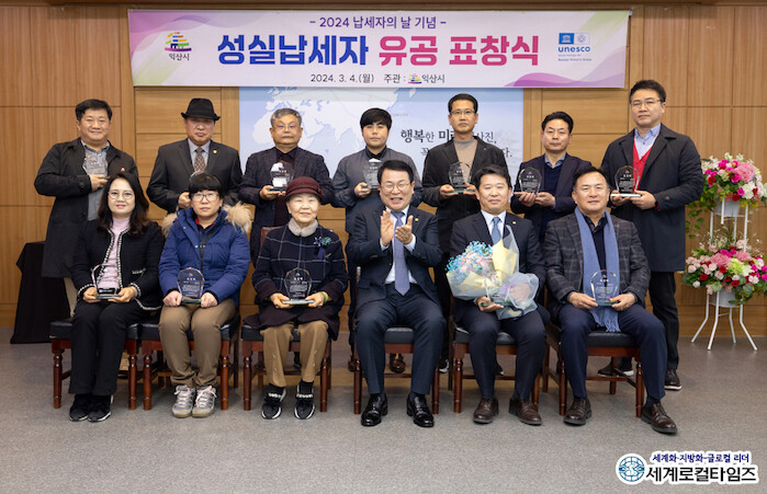 [세계로컬타임즈 조주연 기자] 전북 익산시가 ‘제58회 납세자의 날’(3월 3일)을 맞아 4일, 지방세 성실납세 유공자 12명에 대해 표창패를 수여했다.