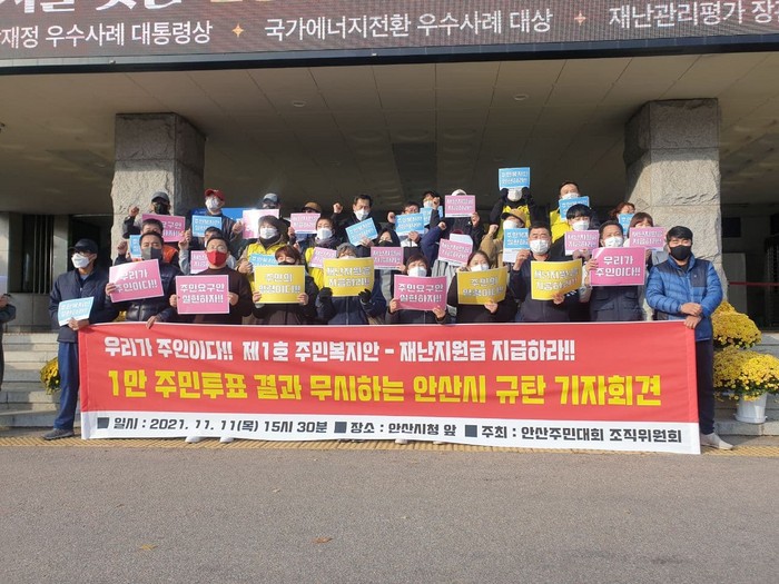 하지만 “안산시는 주민 1만 명의 목소리에 묵묵부답으로 대응하고 안산시장 면담과 주민의 결정사항에 대한 안산시 답변 요구도 현재까지 모르쇠로 일관하고 있다”며 질책하고 “안산의 모든 정치인은 ‘제1호 주민복지안 - 세금페이백’을 재난지원금으로 지급하라는 주민의 준엄한 명령을 받아들어야 한다”고 촉구했다