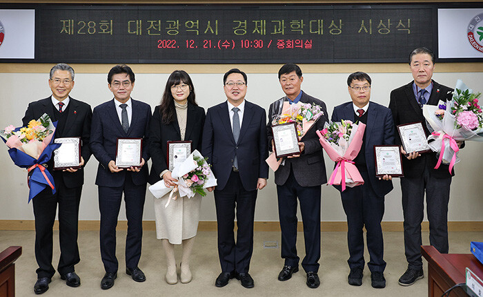 올해 28회를 맞는 대전광역시 경제과학대상은 1994년부터 대전의 경제‧과학 발전에 기여한 유공자를 발굴, 시상한 상으로 금일 수상한 6명을 포함, 총 160명의 수상자를 선정했다.