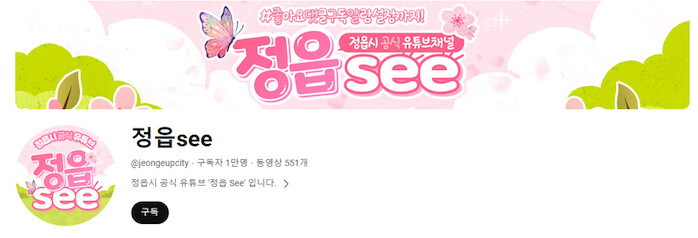 [세계로컬타임즈 조주연 기자] 전북 정읍시 공식 유튜브 채널 ‘정읍See’가 5일 기준, 구독자수 만 명을 넘었다.