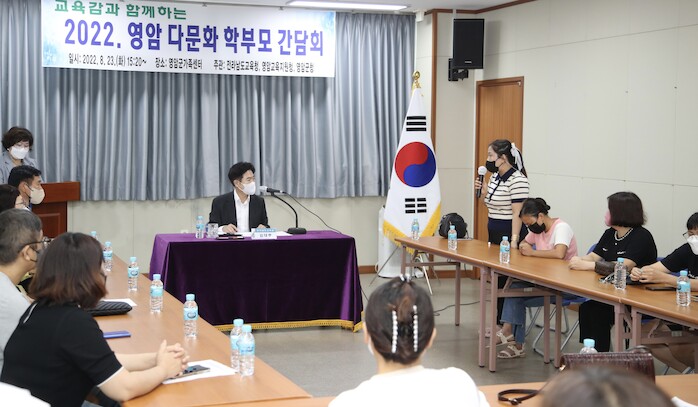 [세계로컬타임즈 김명진 기자] 전라남도교육청(교육감 김대중)이 23일 영암군가족센터에서 ‘교육감과 함께하는 영암 다문화 학부모 간담회’를 운영했다.