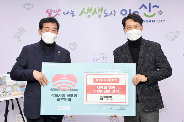 안산시는 16일 안산제일교회(담임목사 허요한)로부터 코로나19로 어려운 상황에 놓인 다문화가정 및 취약계층 아동·청소년들을 위한 사랑의 성금 1천 200만 원을 기탁 받았다.