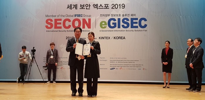 [세계로컬타임즈 류종민 기자] 행정안전부 주최로 열린 SECON 2019 세계 보안 엑스포 개회식에서 구미시 통합관제센터 이미용 관제요원이 지난6일 범죄예방 및 시민 안전에 기여한 공로로 행정안전부 장관 표창을 받았다.