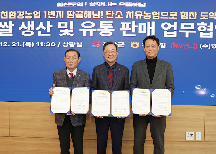 [세계로컬타임즈 강축복 기자] 전남 해남군이 21일 기업, 농협과 함께 항암쌀 생산 및 유통체계 구축을 위한 업무협약을 체결했다.