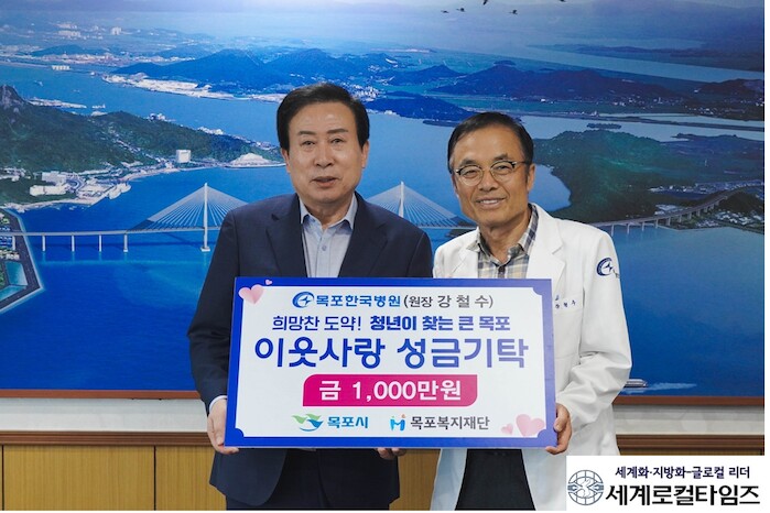 [세계로컬타임즈 김명진 기자] 목포한국병원 강철수 원장이 목포복지재단에 성금 1000만 원을 기탁했다.