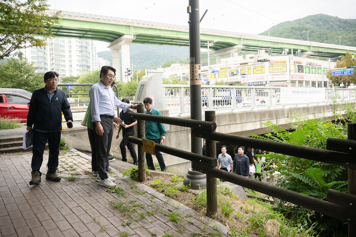 이날 조성대 의장은 현장에서 동행한 관계 공무원들과 함께 호만천 산책로 주변을 걸으며 비상·호우시 진입 차단시설들과 계단데크 등 보행시설들을 점검했다. 이어, 호우 등으로 하천 수위가 높아지는 경우 접근방지방책으로 위험테이프 등 쉽게 훼손 가능한 장비에 의존하는 것을 지적하며 안전휀스 설치 등 사고방지를 위한 시설물을 개선할 것을 주문했다.