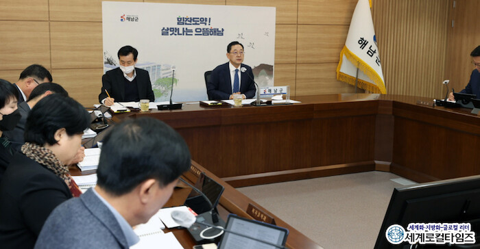 [세계로컬타임즈 강축복 기자] 명현관 전남 해남군수가 13일 정례회의를 통해 “지난주 해양수산부의 김산업 진흥구역 공모사업의 신규 대상지로 해남군이 선정되기까지 노력해 주시어 감사드린다”며 “이번 공모사업을 통해 해남김의 위상을 높이는 계기를 만들고 김산업 활성화의 방안을 적극 추진해 주시길 바란다”고 전했다.