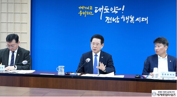 [세계로컬타임즈 김명진 기자] 김영록 전라남도지사는 5일 “중앙부처의 규제완화 등 제도변화 기류에 신속하고 적극적으로 대응해 도정에 효과적으로 활용하고, 의사 집단행동에 따른 비상진료체계에 누수가 없도록 모든 실국이 나서달라”고 당부했다.