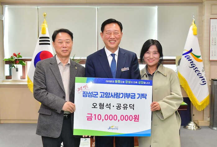 [세계로컬타임즈 이남규 기자] 장성군은 2년 연속 고향 사랑 개인 기부 상한액을 쾌척한 부부가 화재를 모으고 있다. 북이면 출신 오형석, 공유덕 내외 이야기다.