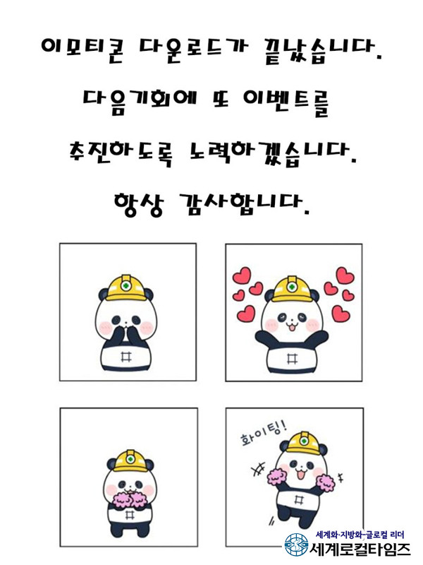 [세계로컬타임즈 조주연 기자] 전북 정읍시가 진행한 카카오톡 이모티콘 무료 배포 이벤트가 기간 내 내려받을 수 있다는 취지의 홍보와는 다르게 ‘재고 소진’의 이유로 이벤트를 종료해 원성을 사고 있다.