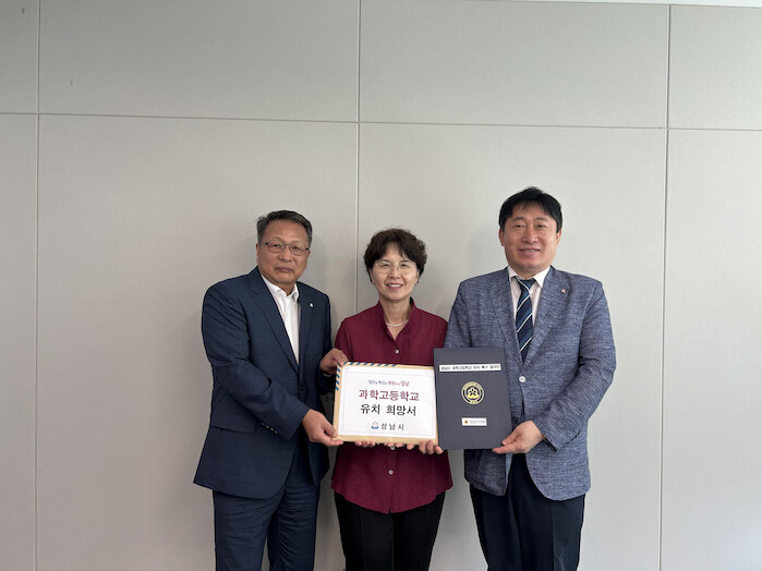 최근 성남시 의뢰를 받아 성남시정연구원이 수행한 ‘성남시 과학고 설립에 대한 성남시민 인식 조사’ 결과 조사대상 성남시민 653명 중 84.7%가 과학고 설립에 찬성하는 것으로 나타나, 시민의 과학고 유치 염원을 확인했다. 성남시의회 추선미 의원이 대표 발의한 「성남시 과학고등학교 유치 촉구결의안」도 함께 전달했다.
