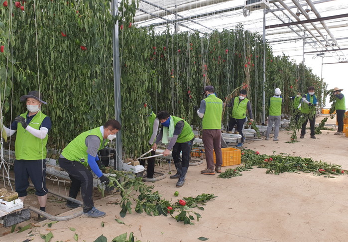 해당농가는 지난 7월초 집중호우로 침수 피해를 입은 후모종 입식을 앞두고 기존 폐농작물을 걷어내야 함에도 불구하고 일손이 미치지 못해 어려움을 겪고 있었다.