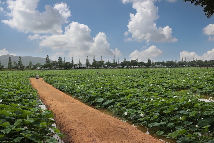 사계절 관광명소인 회산백련지에는 벌써부터 연꽃 봉오리들이 서로 경쟁하듯 자라고 백련지 입구 일부 구간에는 이른 꽃들이 벌써부터 하얗게 피어나 관광객들의 발길을 잡고 있다.
