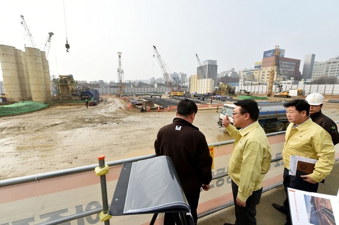 | ▲ 허종식 인천시 균형발전정무부시장이 건설현장 미세먼지 대응실태를 점검하고 있다. (사진=인천시 제공) |