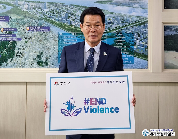 [세계로컬타임즈 조주연 기자] 권익현 전북 부안군수가 8일 아동폭력 근절을 위한 ‘END Violence’ 캠페인에 참여했다.
