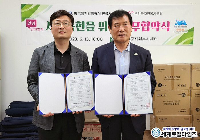 [세계로컬타임즈 조주연 기자] 전북 부안군이 “지난 2일과 13일, 부안군자원봉사센터가 부안군 로컬JOB센터, 한국전기안전공사 전북서부지사와 각각 자원봉사 영역확장과 건강한 지역사회 공동체 분위기를 조성하기 위해 업무협약을 체결했다”고 14일 밝혔다.