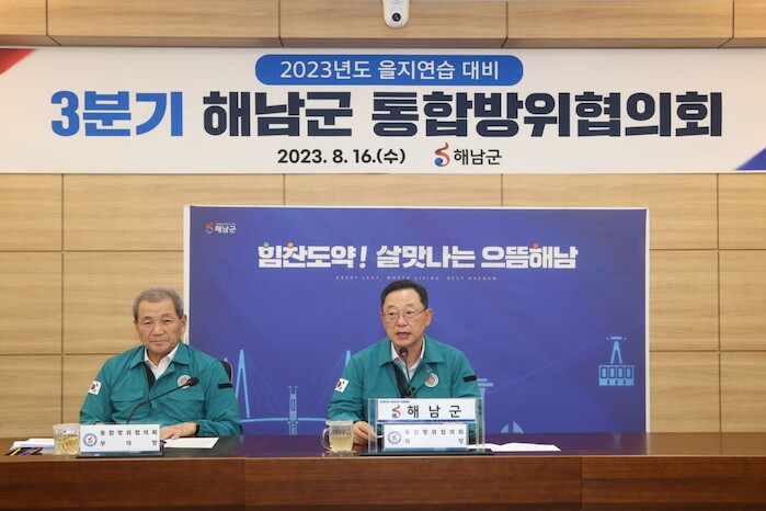 군은 16일 명현관 군수가 주재하는 해남군통합방위협의회를 개최하고, 을지연습 추진상황 점검하는 한편 군부대와 경찰서의 작전상황 보고 등 유관기관 간 훈련계획을 공유했다.