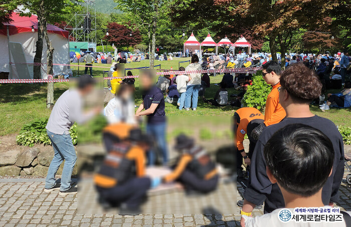 [세계로컬타임즈 글·사진 조주연 기자] 27일 오후, 전북 김제시 금산면 금산사 잔디광장에서 열린 음악행사에서 관객이 부상을 당해 병원으로 이송됐다.