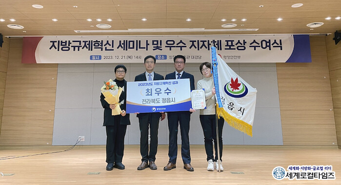 [세계로컬타임즈 조주연 기자] 전북 정읍시가 정부의 2023년 규제혁신 추진 실적 성과평가에서 기초지자체 부문 최우수 기관으로 선정됐다.
