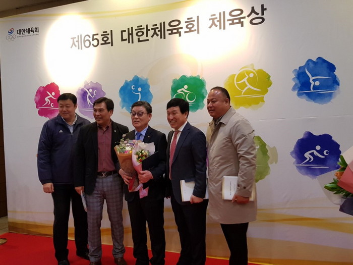 | ▲ 김도영 경상북도 양궁협회장이 대한체육회체육상 시상식에서 "공로상"수상 후 기념촬영을 하고 있다. (사진= 예천군 제공) |