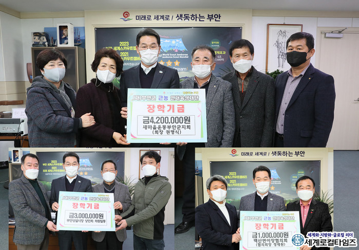 [세계로컬타임즈 조주연 기자] 전북 부안군 시민 사회단체들의 지역 인재 육성을 위한 장학금 기탁이 잇따르고 있다.