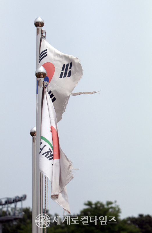 [세계로컬타임즈 조주연 기자] 6일은 제64회 현충일이다. 그런데 한 지방자치단체 체육시설에 심하게 훼손된 태극기가 게양돼있어 비난을 사고 있다.