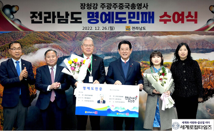 김영록 지사는 “중국 지방정부와의 교류, 경제·통상 활성화를 위해 누구보다 열심히 노력해줘 명예도민으로 선정했다”며 “전남도에 대한 지속적인 관심과 조언 부탁드린다”고 말했다.