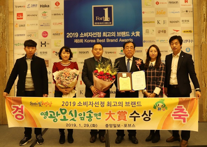 전남 ‘영광모싯잎송편’이 중앙일보·포브스코리아가 주최한 ‘2019년 소비자 선정 최고의 브랜드 대상’에서 지역특산물 부문 대상을 수상했다.