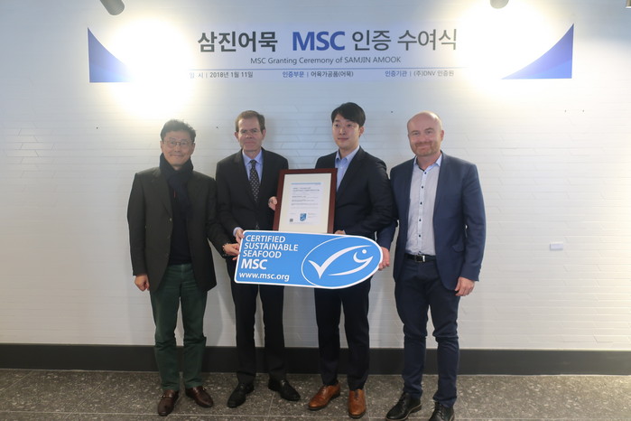 지난 11일 가진 인증 수여식에는 삼진어묵 박용준 대표, 주한노르웨이대사 지그발트 하우게 직무대행, 해양관리협의회 패트릭 칼레오 아시아태평양 총괄 디렉터, 세계자연기금 한국본부 윤세웅 대표 등이 참석했다.