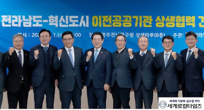 [세계로컬타임즈 김명진 기자] 전라남도는 1일 광주전남연구원 상생마루에서 빛가람혁신도시 이전 공공기관과 간담회를 열어 지역 발전과 혁신도시의 명품화를 위해 상상협력을 강화하기로 뜻을 모았다.