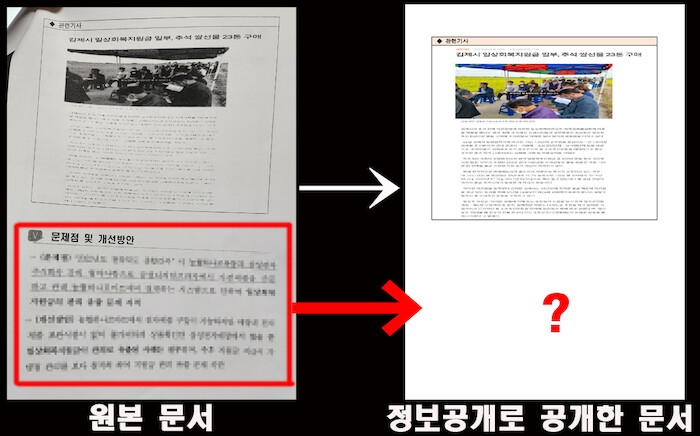 정보공개 했더니 설명 없이 통으로 일부 문장 삭제