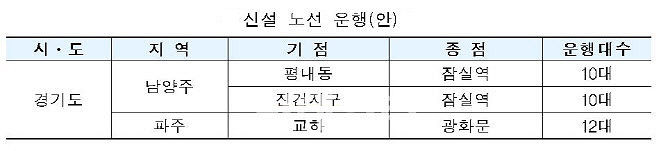 | ▲경기 파주시 및 남양주시 지역에 서울행 광역급행버스(이하 M버스) 3개 노선이 신설된다. |