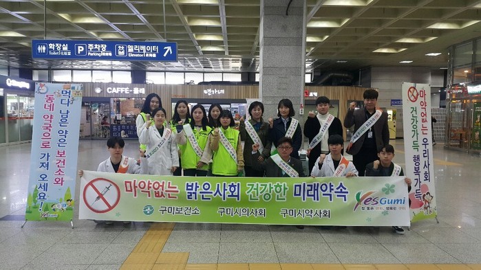 이날 참가자들은 구미역광장에서 불법마약류 예방 및 폐의약품 회수 배너 설치, 홍보물 배부, 폐의약품 일정한 장소(약국, 보건소)에 배출 알리기, 마약류 위험성 알리기 등 찾아가는 홍보 캠페인을 전개 했다.