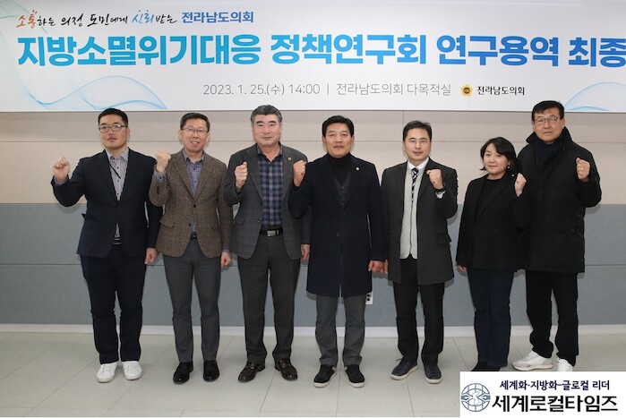 [세계로컬타임즈 김명진 기자] 전남도의회 의원 연구단체인 ‘지방소멸위기대응 정책연구회(대표의원 김재철)는 25일 도의회 다목적실에서 ‘전라남도 농산어촌 유학 활성화를 통한 인구유입 정책연구’ 용역 최종보고회를 가졌다.