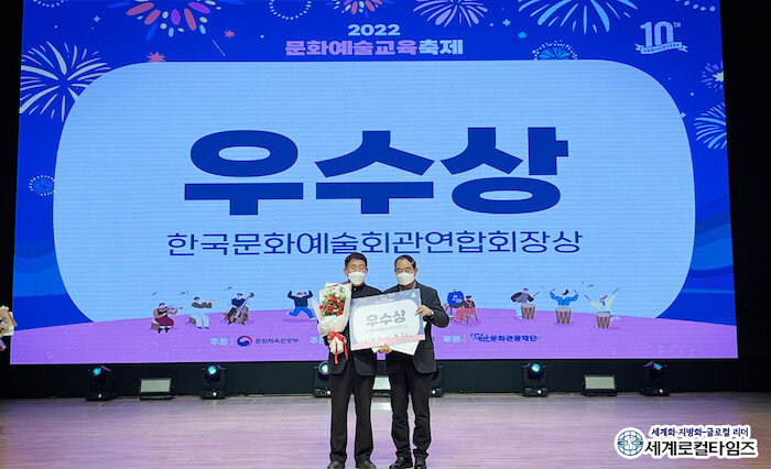 [세계로컬타임즈 조주연 기자] 전북 부안군이 “지난 2일 논산아트센터에서 열린 ‘2022 문화예술교육축제’ 시상식에서 부안예술회관이 우수상을 수상했다”고 6일 밝혔다.