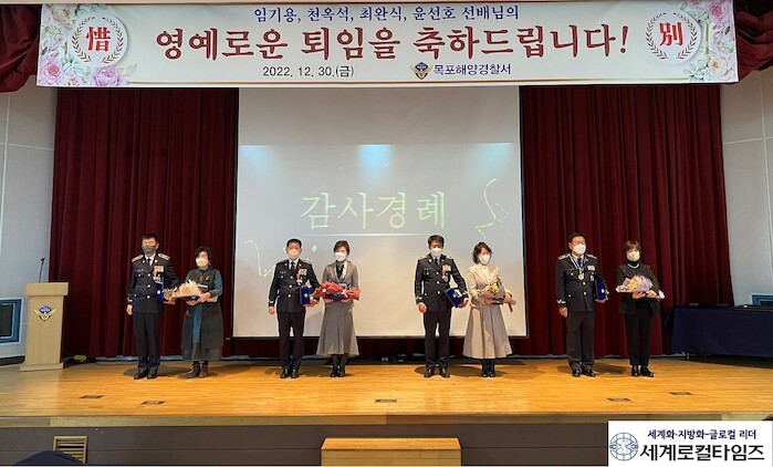 이종욱 목포해양경찰서장은 “서해 해역에서 국가와 국민을 위해 평생을 헌신하신 선배들의 명예로운 퇴임을 축하드린다”며 “새롭게 맞이할 인생 2막에도 건강과 행운이 함께 하길 바란다”고 전했다.