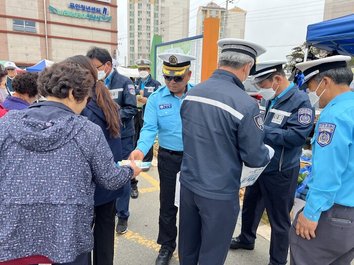 무안 장날을 맞이해 무안전통시장에서 펼쳐진 캠페인은 무안군, 무안경찰서, 무안모범운전자회 등 관계기관 50여 명이 참여해 올바른 운전 매너 장착 및 교통사고 예방을 위한 △무단횡단 절대 금지 △자동차 탑승 시 안전띠 착용 △운전 중 비상등 켜기 등을 주제로 실시됐다.