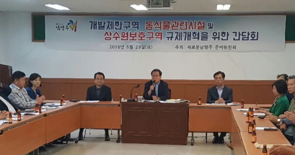 조 시장 당선인 인수위원회인 '새로운 남양주 준비위원회'(이하 준비위원회)는 지난달 29일 조안면 소방대 2층 회의실에서 '개발제한구역 동식물관련시설 및 상수원보호구역 규제개혁 간담회'를 개최했다.