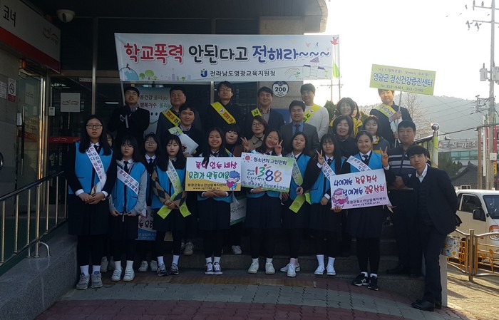 이 날 캠페인에는 ‘영광교육지원청, 영광경찰서, 영광군청소년상담복지센터, 영광군정신건강복지센터’가 함께 ‘폭력없는 안전한 학교, 모두가 행복한 학교’ 만들기를 위해 합심하여 노력할 것을 다짐했다.