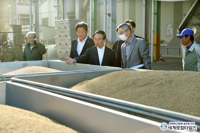 [세계로컬타임즈 조주연 기자] 심민 전북 임실군수가 2022년산 공공비축미곡 산물벼 매입 현장을 방문해 농업인들의 애로사항을 청취하고 격려했다.