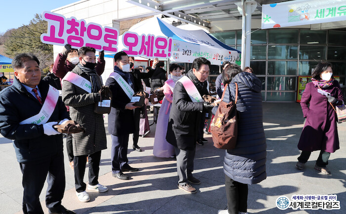 [세계로컬타임즈 조주연 기자] 심덕섭 전북 고창군수가 설 연휴 첫날인 21일 고속도로 휴게소에서 ‘세계유산도시 고창 방문의 해’ 홍보에 나섰다.