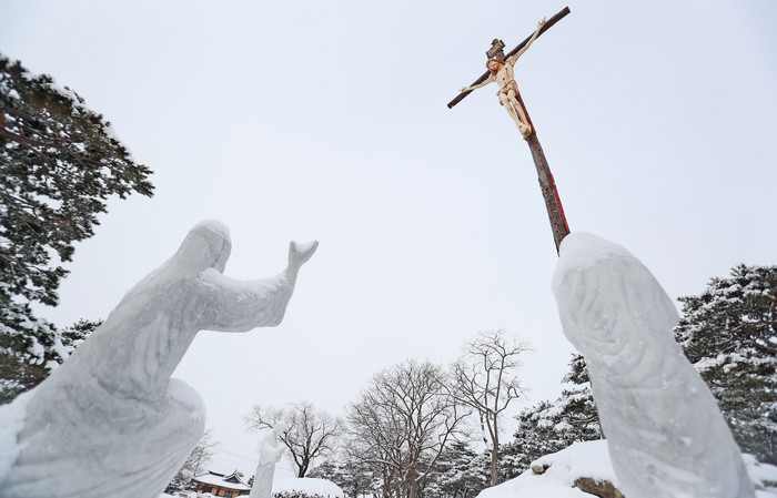[세계로컬신문 홍윤표 조사위원] 우리나라 최초의 사제 김대건 신부가 탄생한 대한민국 천주교의 요람 당진 솔뫼성지에 지난 8일부터 눈이 내려 운치를 더하고 있다.