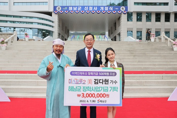 이이날 트로트가수 김다현이 해남군장학사업기금 300만 원을 기탁했다.
