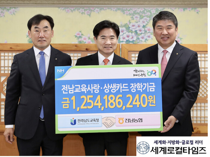 [세계로컬타임즈 김명진 기자] NH농협은행 전남본부가 ‘전남교육사랑·지역상생카드 장학기금’ 12억 5000여만 원을 전남미래교육재단에 전달했다.