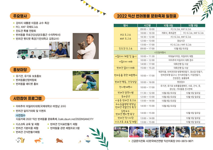 6일 익산시에 따르면 가을철 연휴기간 동안 반려동물과 함께 즐길 수 있는 공간과 축제가 부족함을 해결하고자 ‘2022 익산 반려동물 문화축제’가 기획됐다.