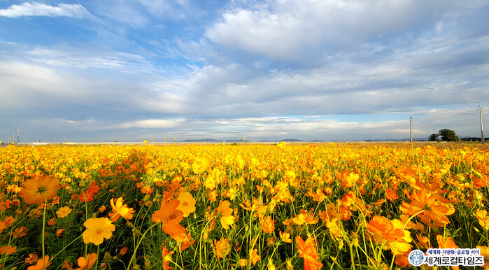 [세계로컬타임즈 글·사진 조주연 기자] 제24회 김제지평선축제를 위해 조성된 전북 김제의 황화코스모스 정원이 축제 개막 6일을 앞두고 만개해 장관을 이루고 있다.