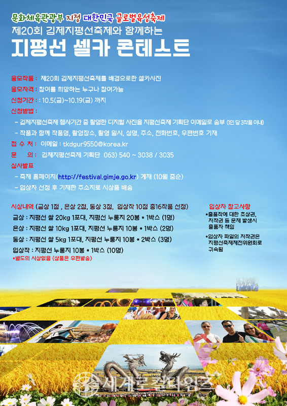 축제 기획단은 올해 프로그램 중 하나로 제20회 김제지평선축제를 배경으로 한 셀카사진을 올리면 심사 후 시상을 한다는 '지평선 셀카 콘테스트'를 진행했다.