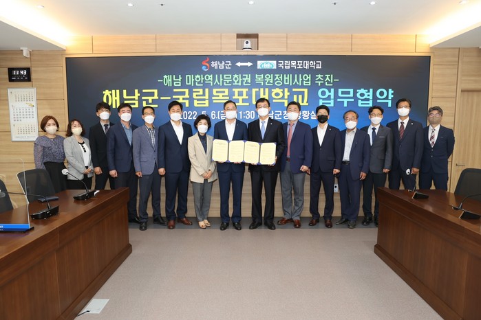 이번 협약은 상호 인적협력과 지원체계를 갖추고 해남군과 목포대학교가 협력하여 마한역사문화권 복원정비방안을 모색하기 위해 추진됐다.